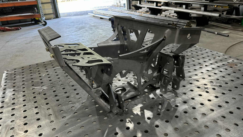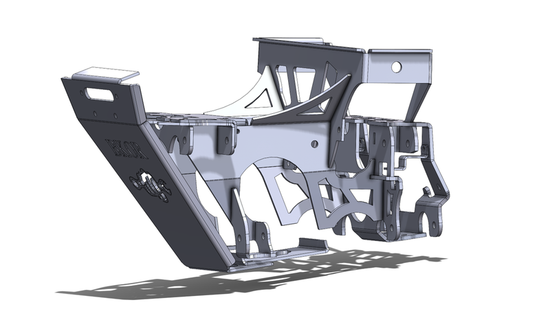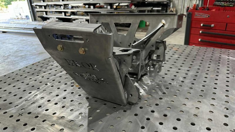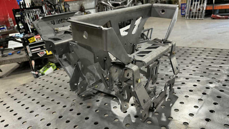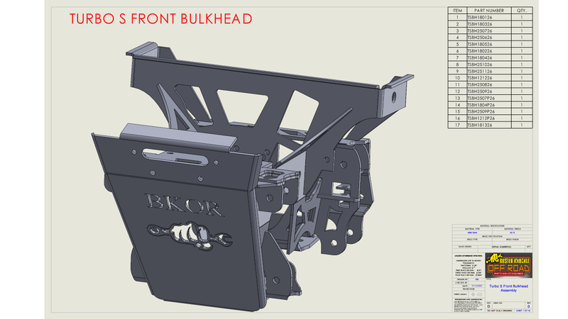 Our bulkhead is a perfect place to start your custom RZR build. It retains all of the factory geometry and utilizes all of the factory components of the Turbo S. It has the ability to accept the factory rack AND full hydraulic setups. This bulkhead is beefed up in all the right places. It is cleverly designed with easy access to the front diff, a replaceable front bash plate, access to the drain plug, 1/4" steel in the tabs that see the most abuse, and an integrated winch plate. Laser cut with a 6k fiber laser for perfect holes and alignment. CNC press broke for perfect fitment and added part strength without adding excessive weight.